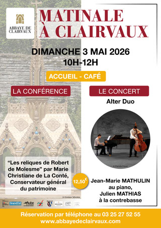 - de 10h30 à 11h15: Conférence "Les reliques de Robert de Molesme" par Marie Christiane DE LA CONTE, historienne