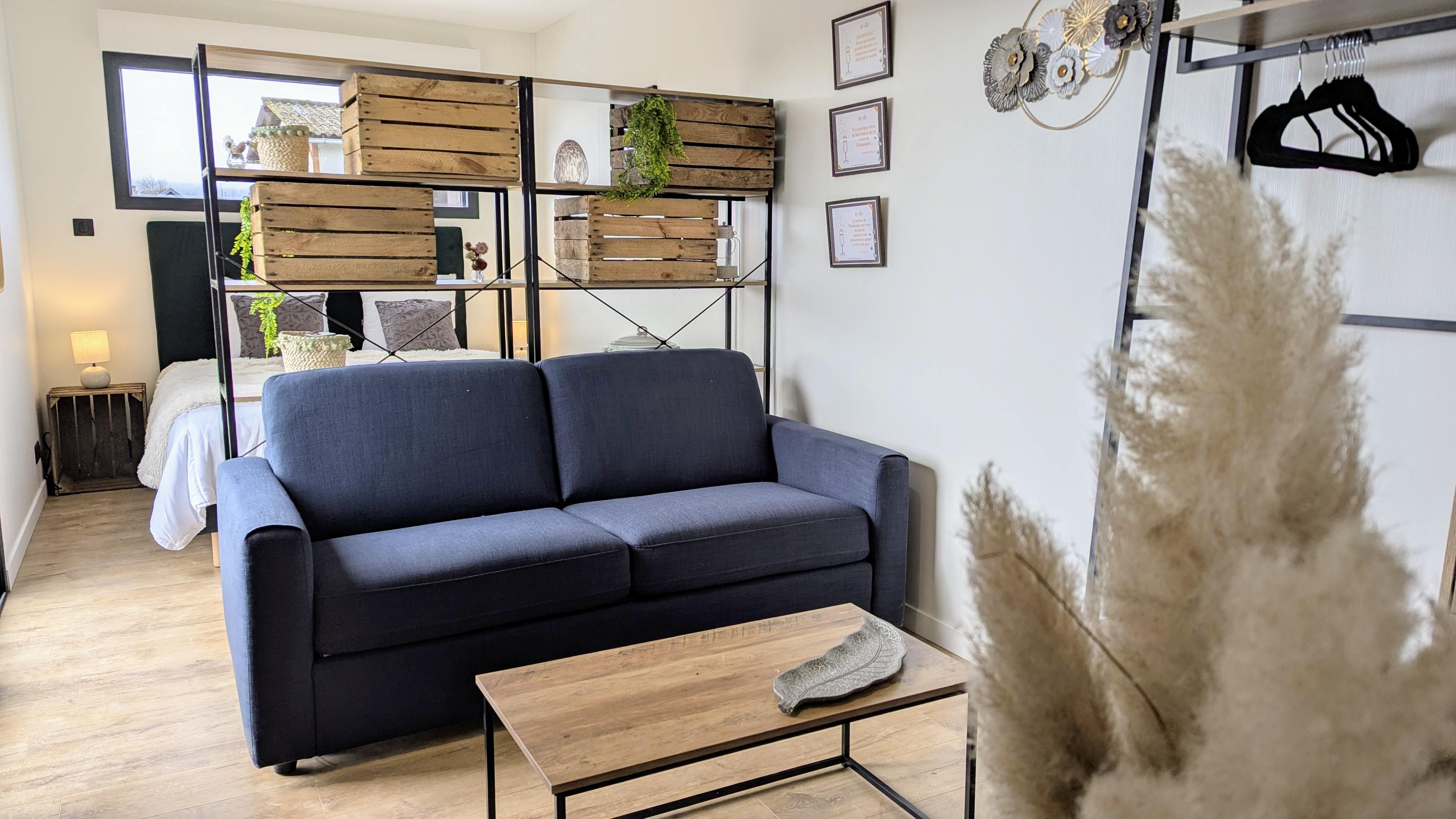 Une chambre/salon lumineux: un espace ouvert et chaleureux où confort et luminosité se rencontrent.