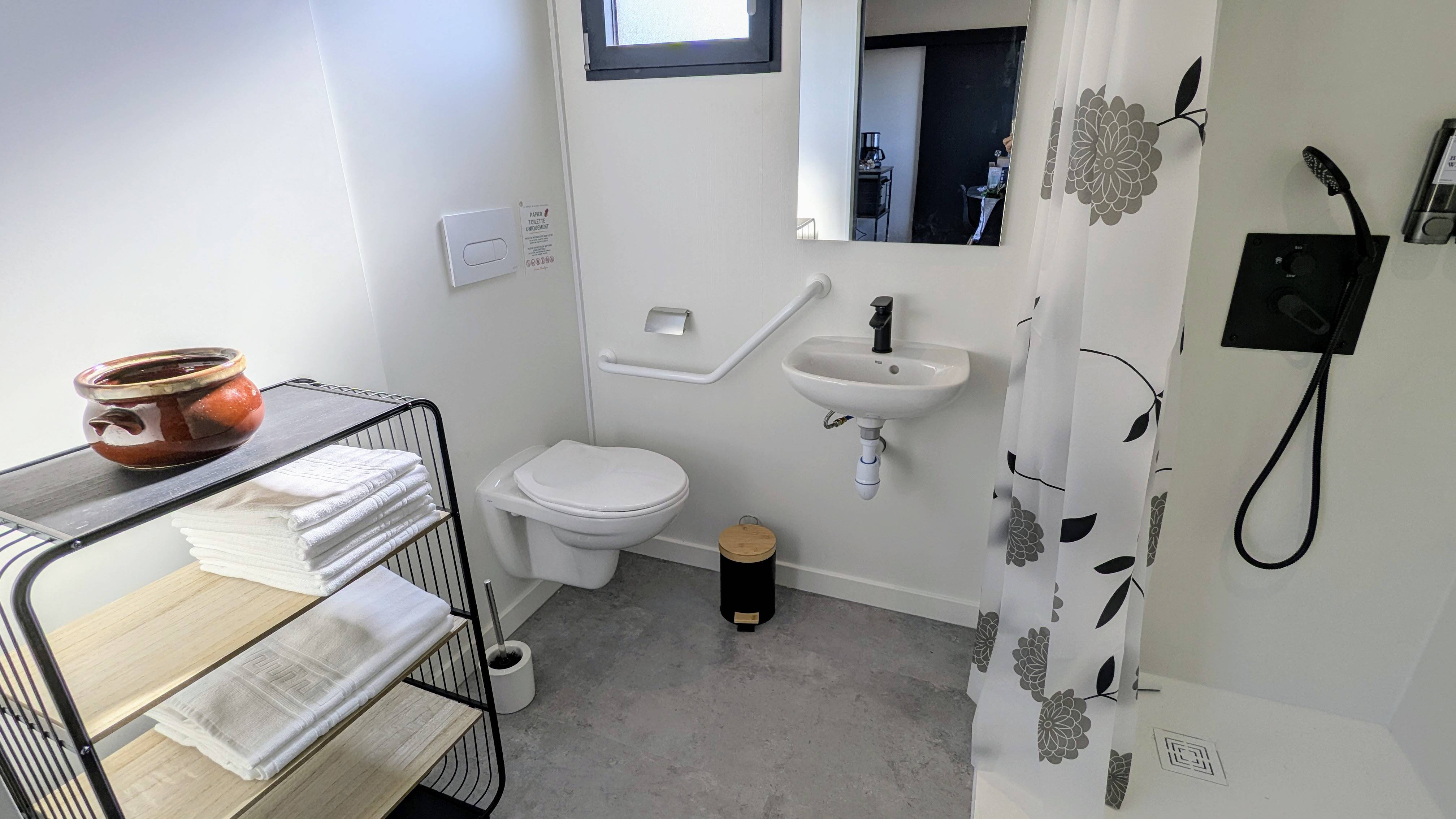 Une salle de bain fonctionnelle: pratique et élégante, pour un confort optimal pendant votre séjour.