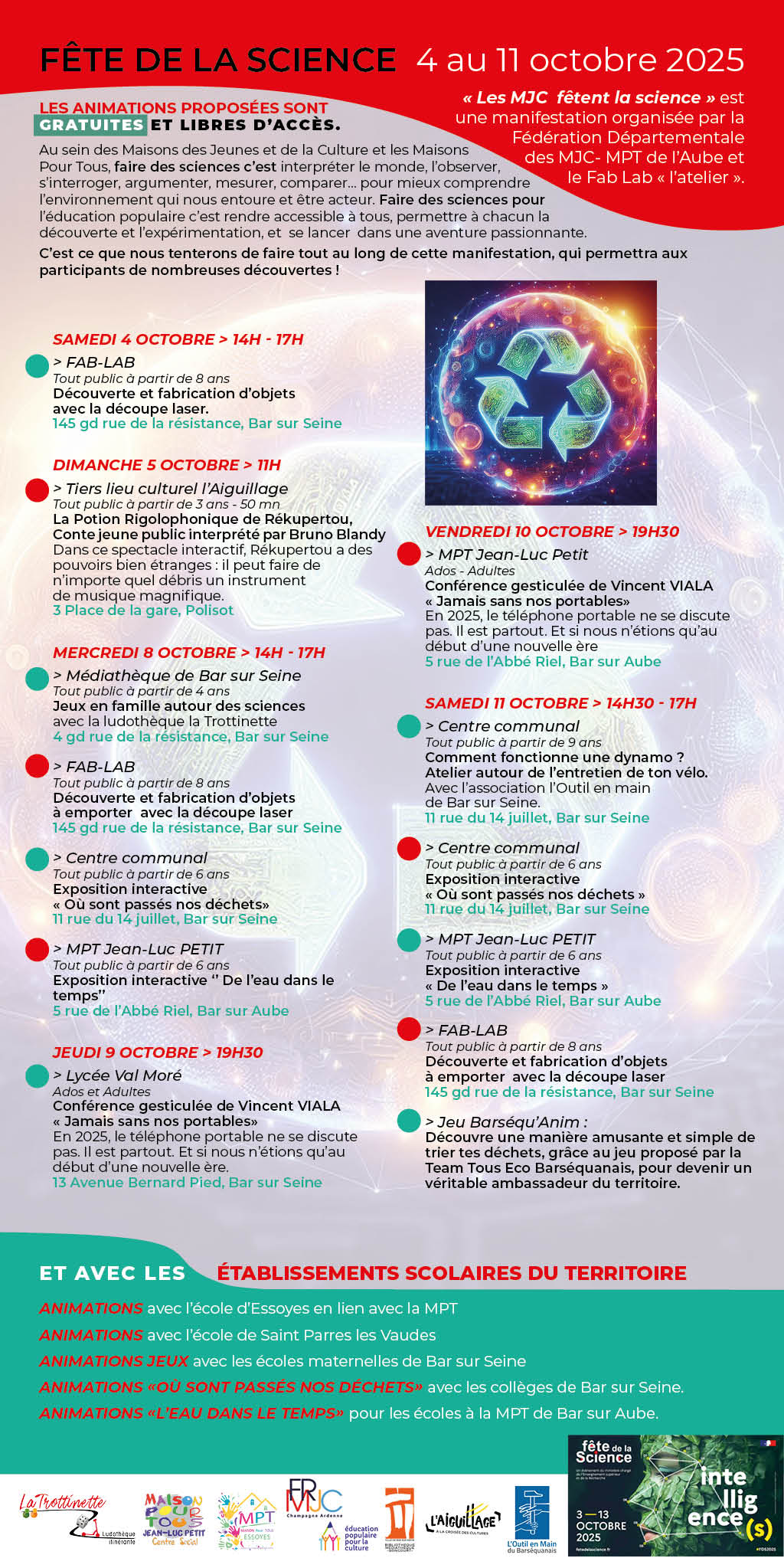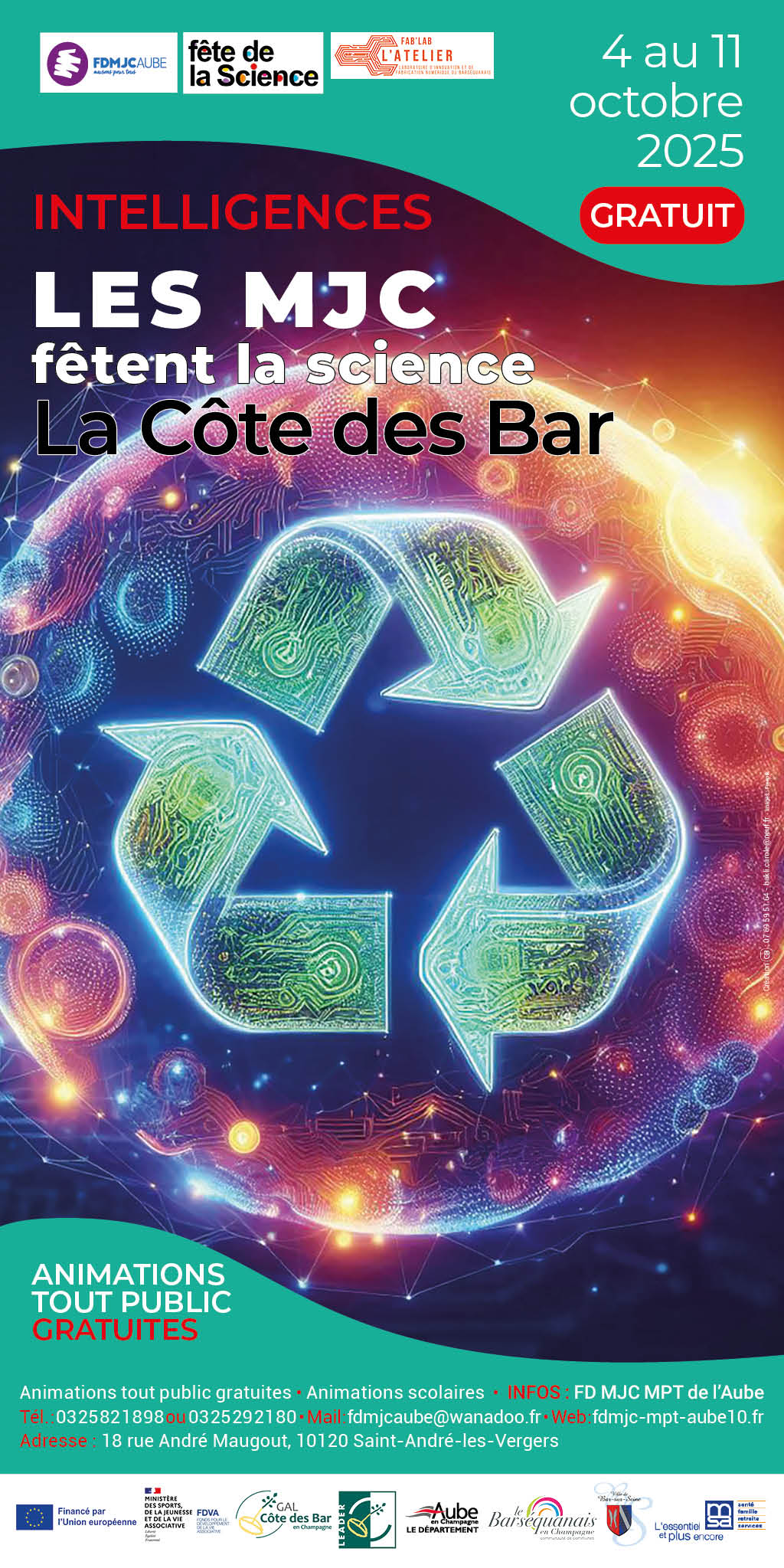 « Les MJC fêtent la science » est une manifestation organisée par la Fédération Départementale des MJC - MPT de l’Aube et le Fab Lab « l’atelier ».