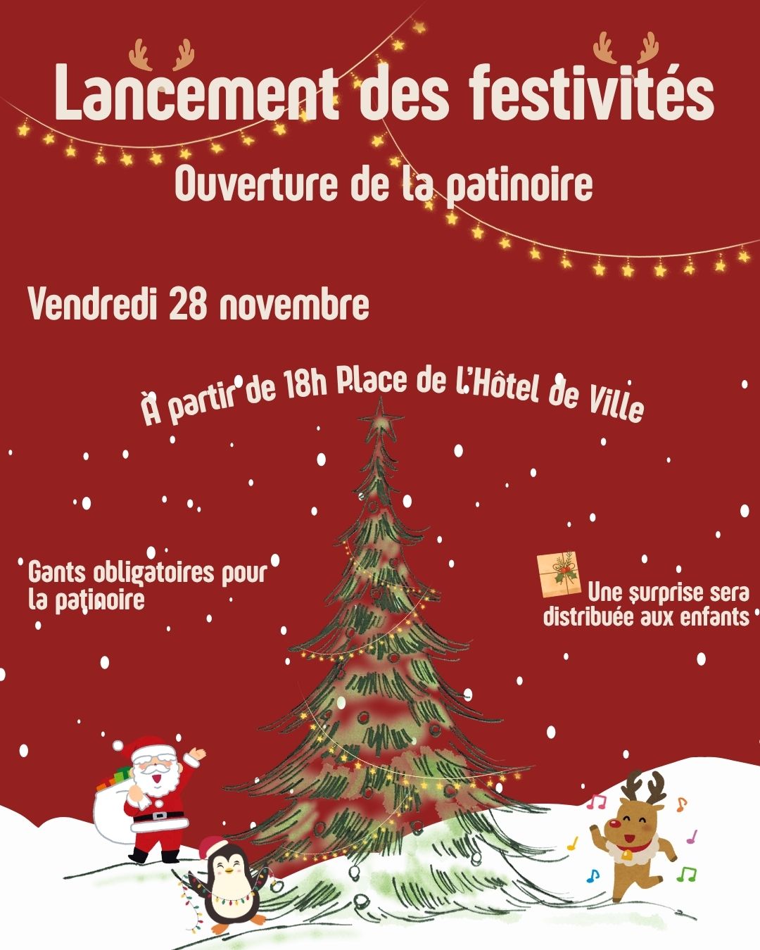 Venez assister au lancement des illuminations de Noël et de l'ouverture de la patinoire.