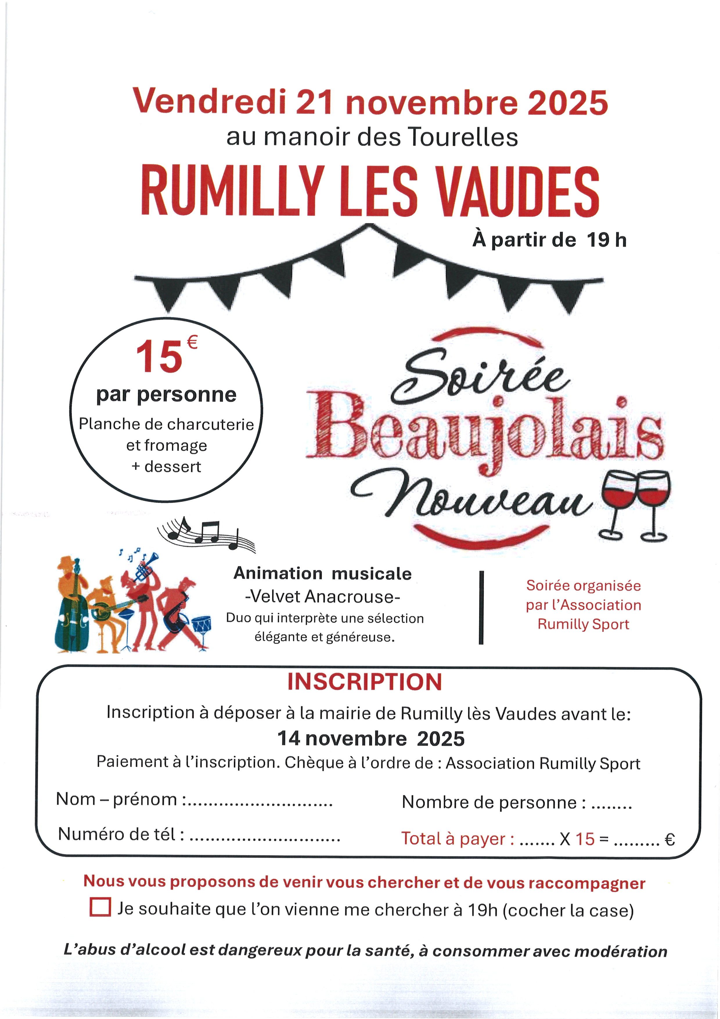 L'association Rumilly Sport propose une soirée beaujolais nouveau.