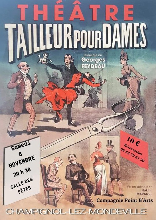 Le Comité des fêtes Champignolais vous propose la pièce de théâtre "Tailleur pour dames" interprété par la compagnie Point B'Arts d'Arc-en-Barrois.